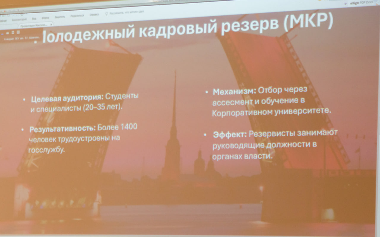 Согласно программе форума, первым с докладом «Молодежь как кадровый проект государства (на примере Российской Федерации)» выступил студент первого курса кафедры государственного управления ФГУ и СГН М.Л. Максимов. Докладчик подробно остановился на национальном проекте «Кадры» 2025-2030 гг., направленном на сокращение кадрового дефицита и синхронизацию образования с рынком труда. Были приведены примеры таких инициатив, как «Молодежный кадровый резерв», «Росмолодежь. Гранты», проект «Твой ход». Основной вывод доклада заключался в том, что инвестиции в молодежь – это долгосрочная стратегия кадровой устойчивости.
