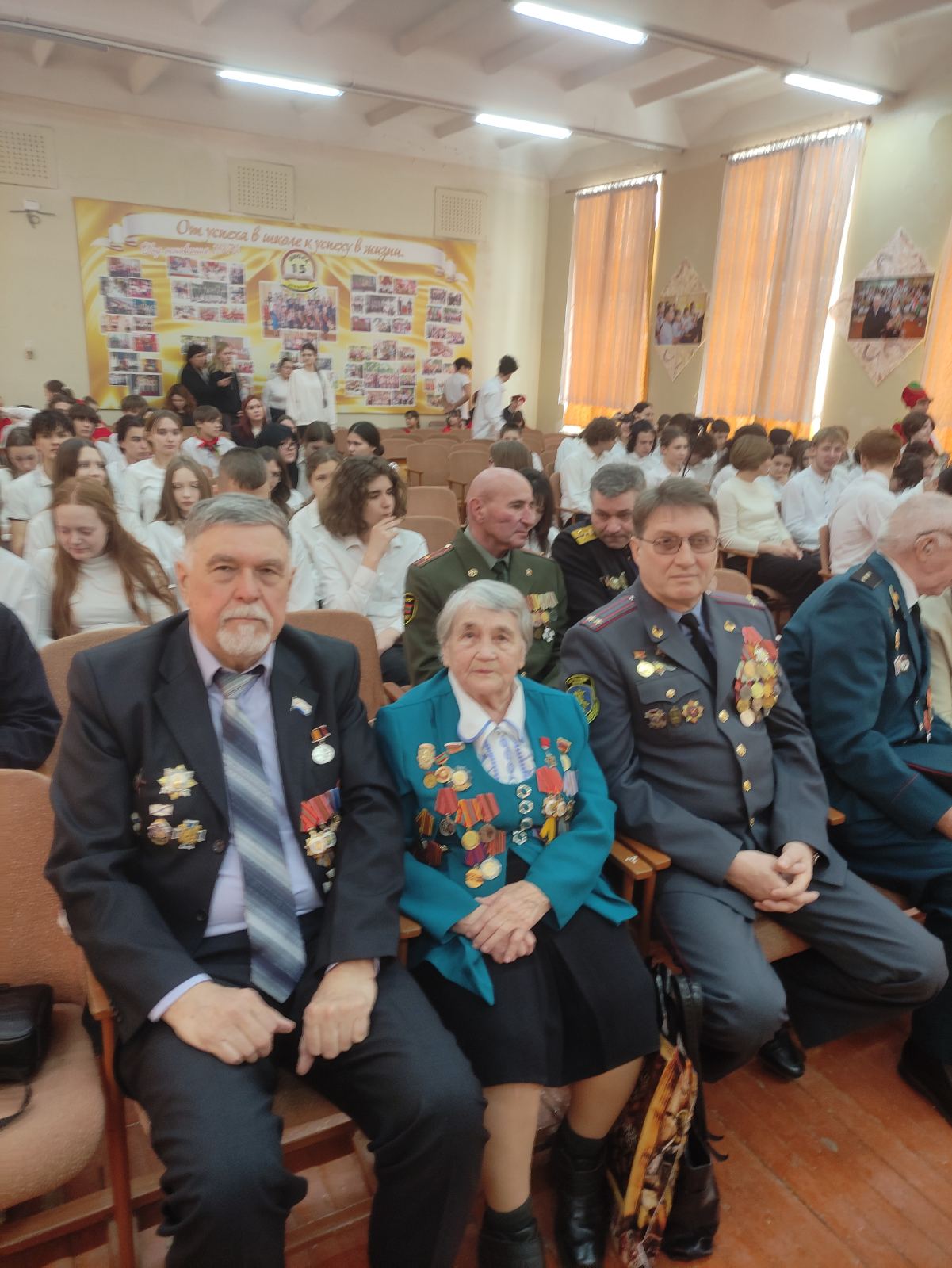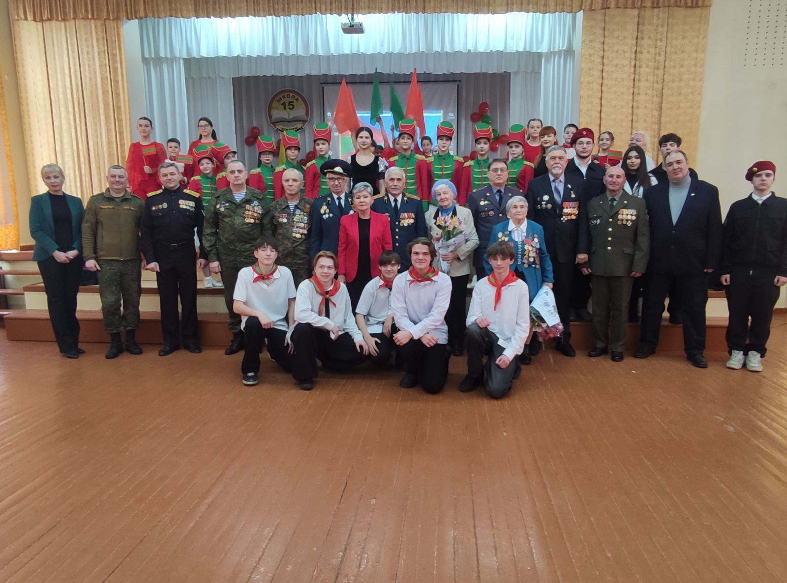 Ученики и учителя для гостей подготовили концертную программу. Со сцены звучали патриотические песни, стихи о мужестве и любви к Родине, литературно-музыкальные композиции. Творческие номера создали атмосферу глубокого уважения и благодарности старшему поколению.